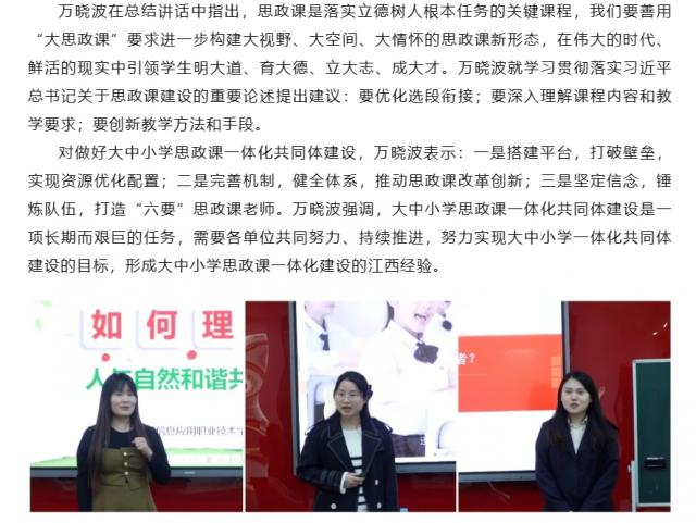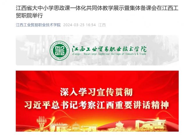 江西省大中小学思政课一体化共同体教学展示暨集体备课会在江西工贸职院举行