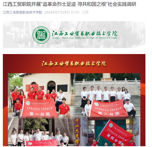 江西工贸职院开展“追革命烈士足迹 寻共和国之根”社会实践调研